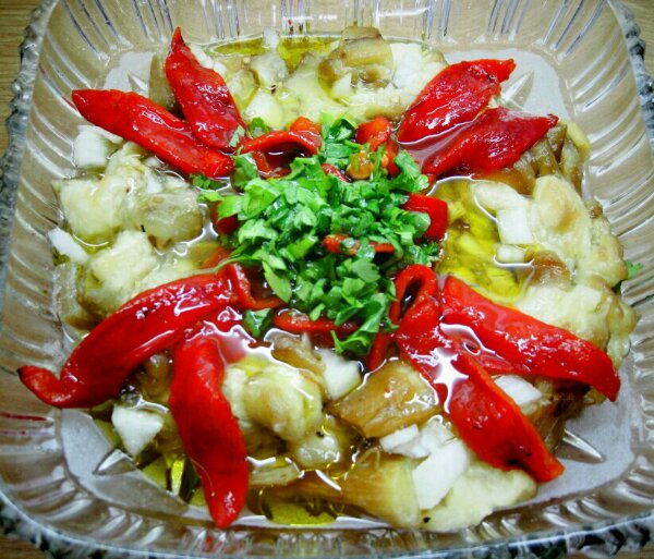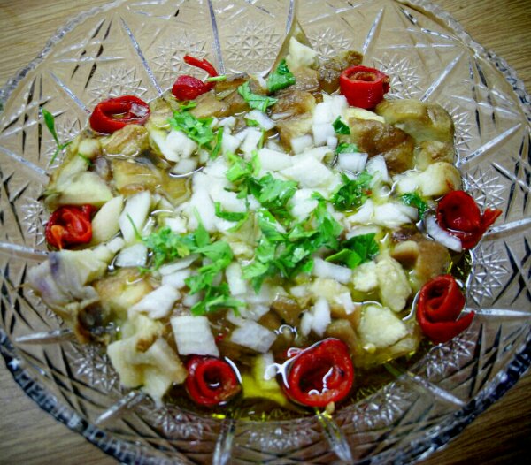 The recipe for this type of Greek Aubergine/Eggplant Salad can be found here